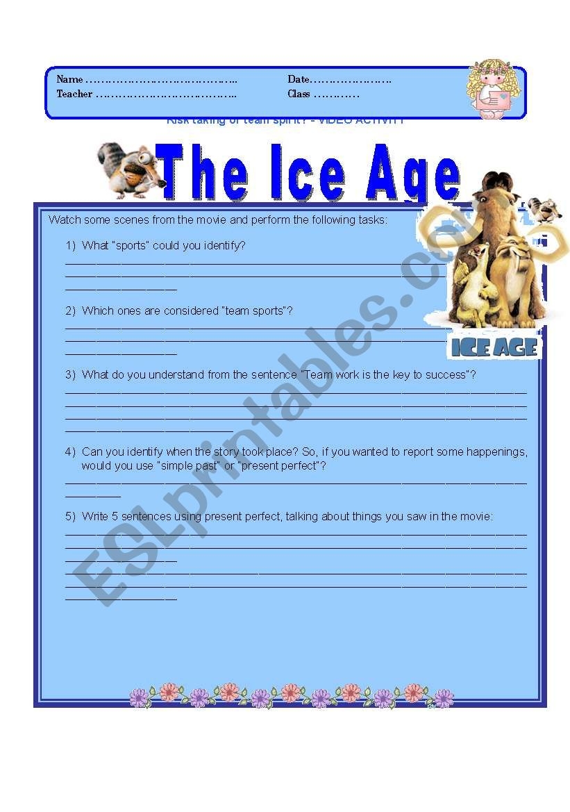 Ice Age ESL Worksheet By Ncguerreiro