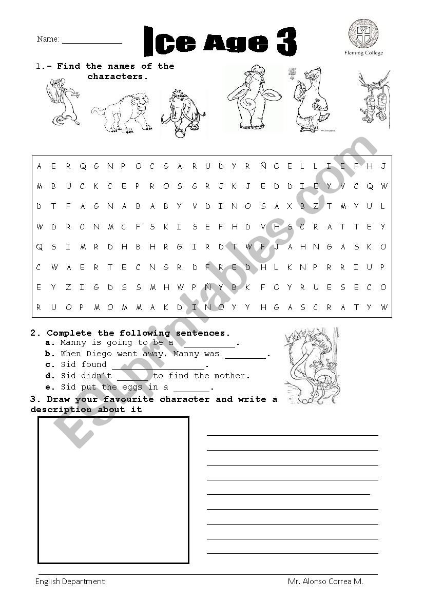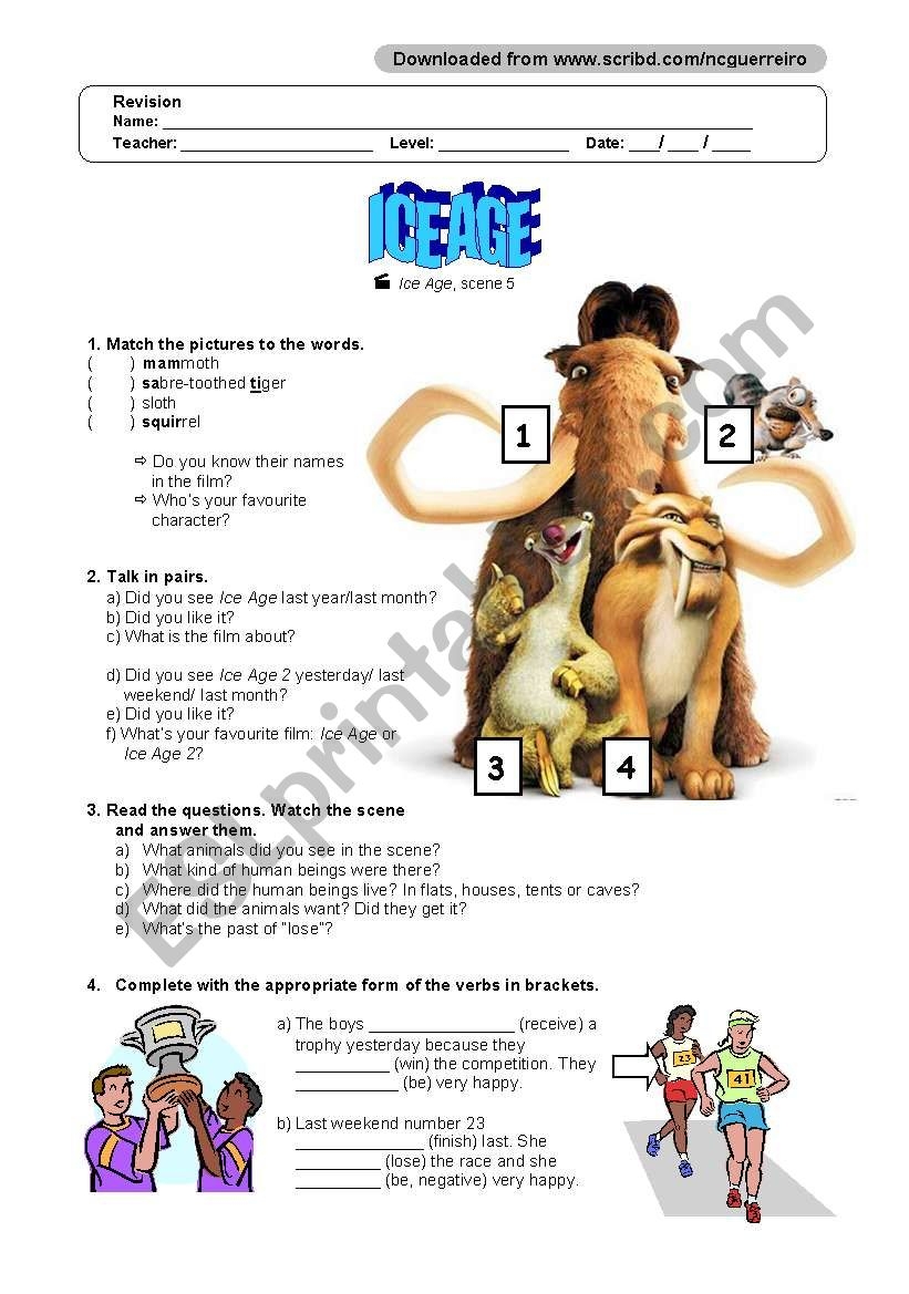 Movie Ice Age ESL Worksheet By ALonSo888
