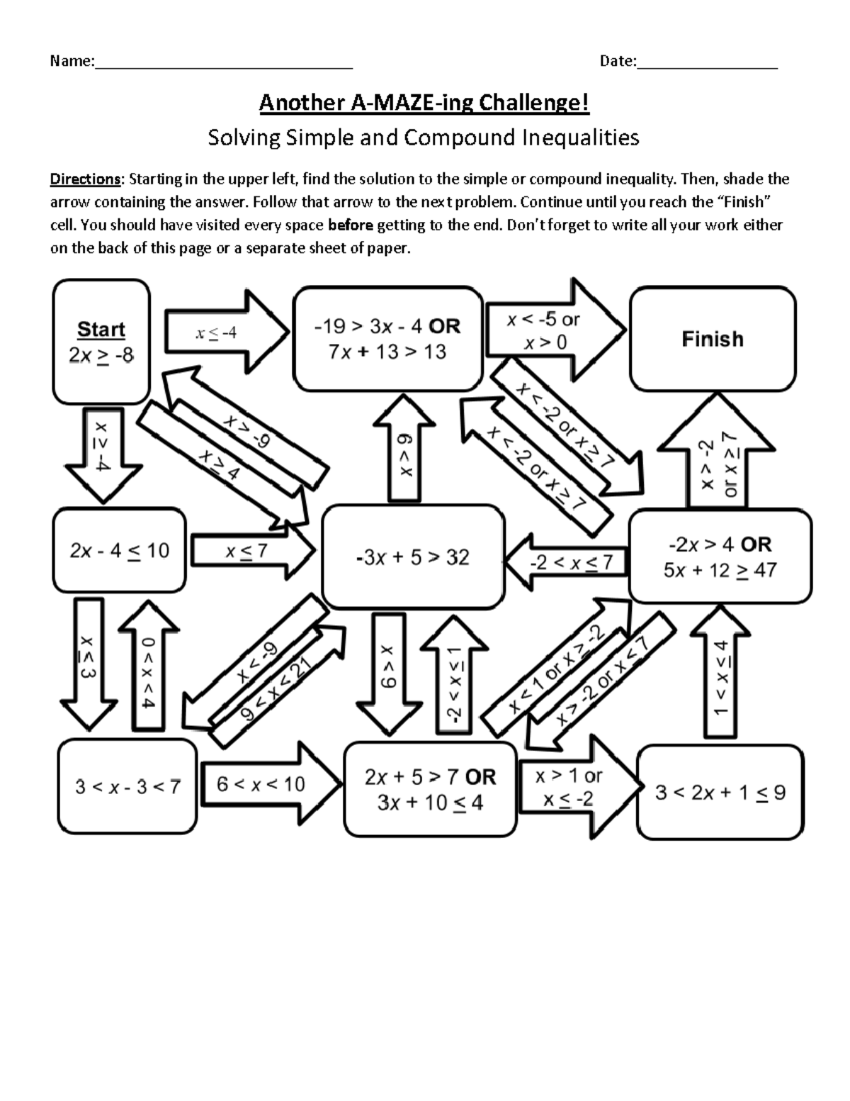 Inequality Maze Worksheet