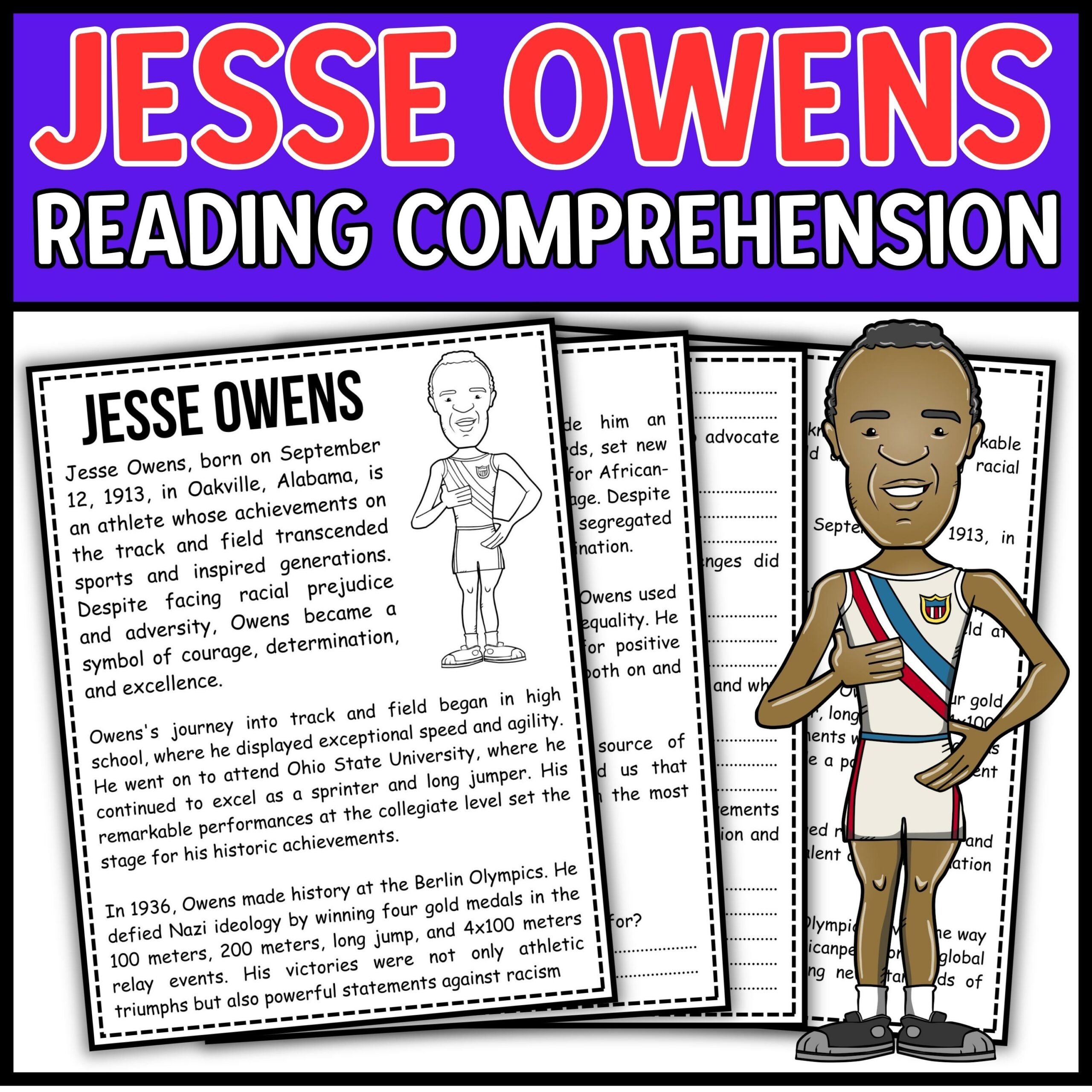 Jesse Owens Biography Reading Comprehension Passage Printable Worksheet PDF Teaching Resources