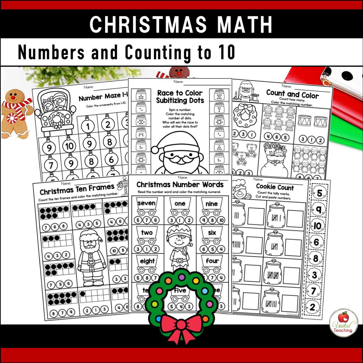 Christmas Math Worksheets Kindergarten Packet United Teaching