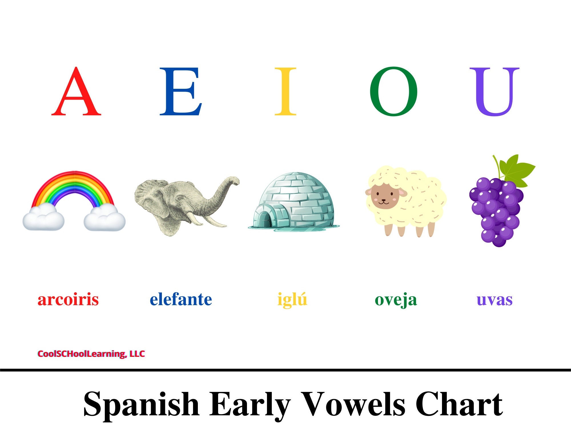 Spanish Vowel Chart Printable Preschool Kindergarten Readiness PDF Digital Download