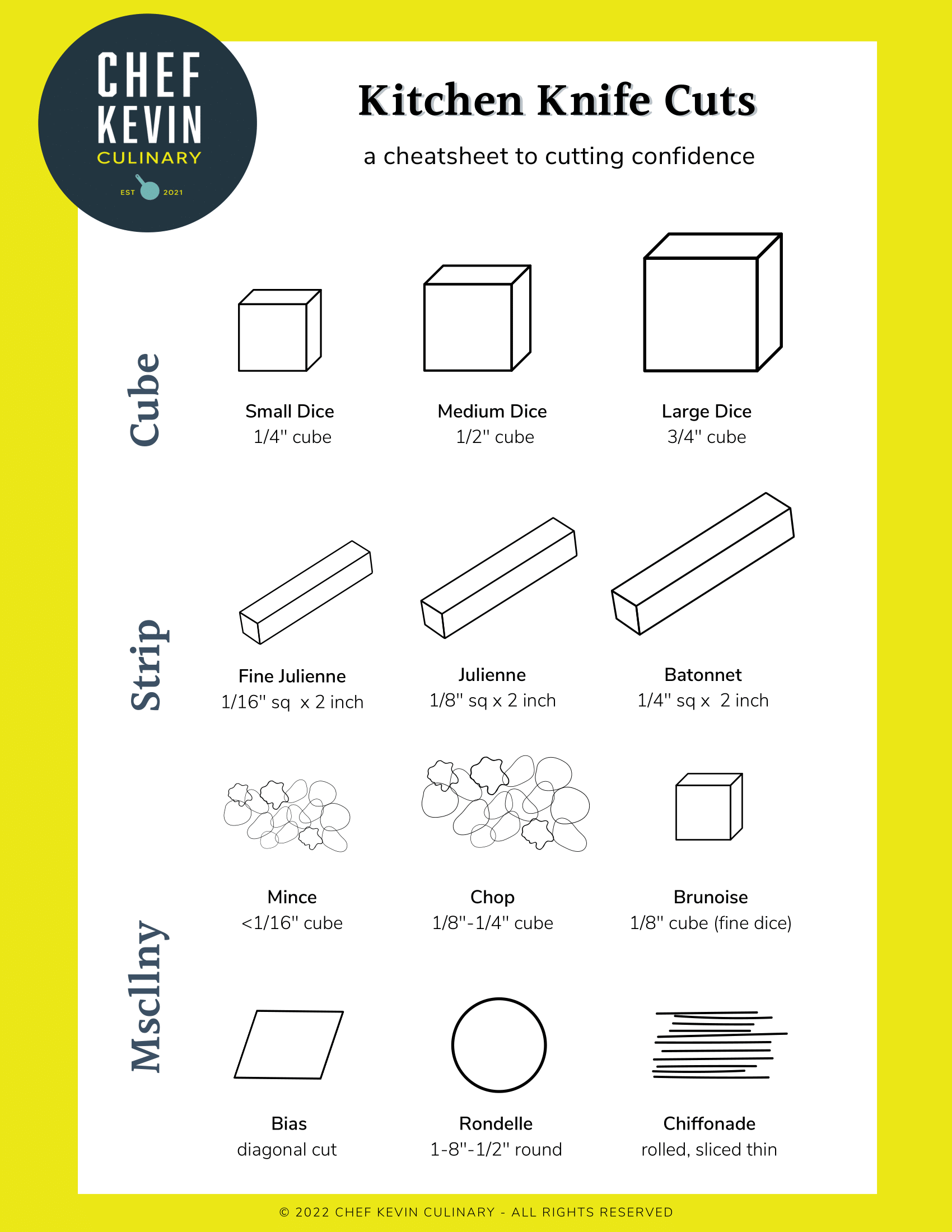 Don’t let the fear of knife cuts hold you back in the kitchen. With our free printable worksheet, you’ll be able to conquer any vegetable with ease. Say goodbye to uneven cuts and hello to perfectly diced veggies that will impress even the toughest food critics.