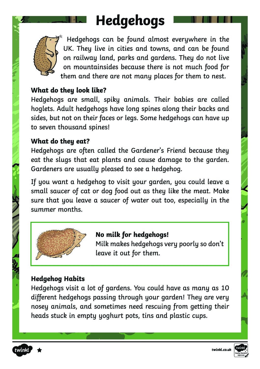 Hedgehogs Differentiated Reading Comprehension Activity St Cyprian s Greek Orthodox Primary Academy