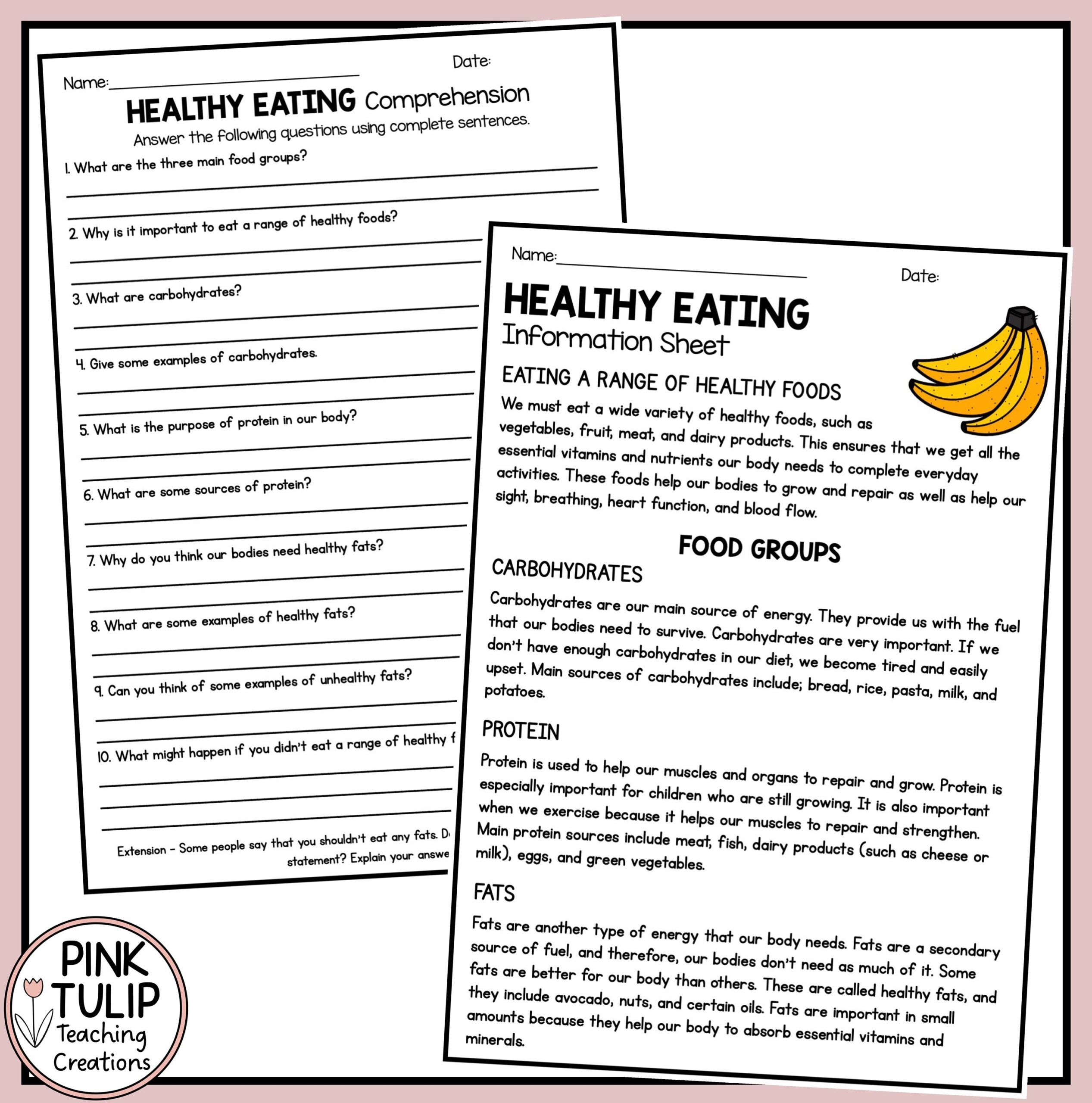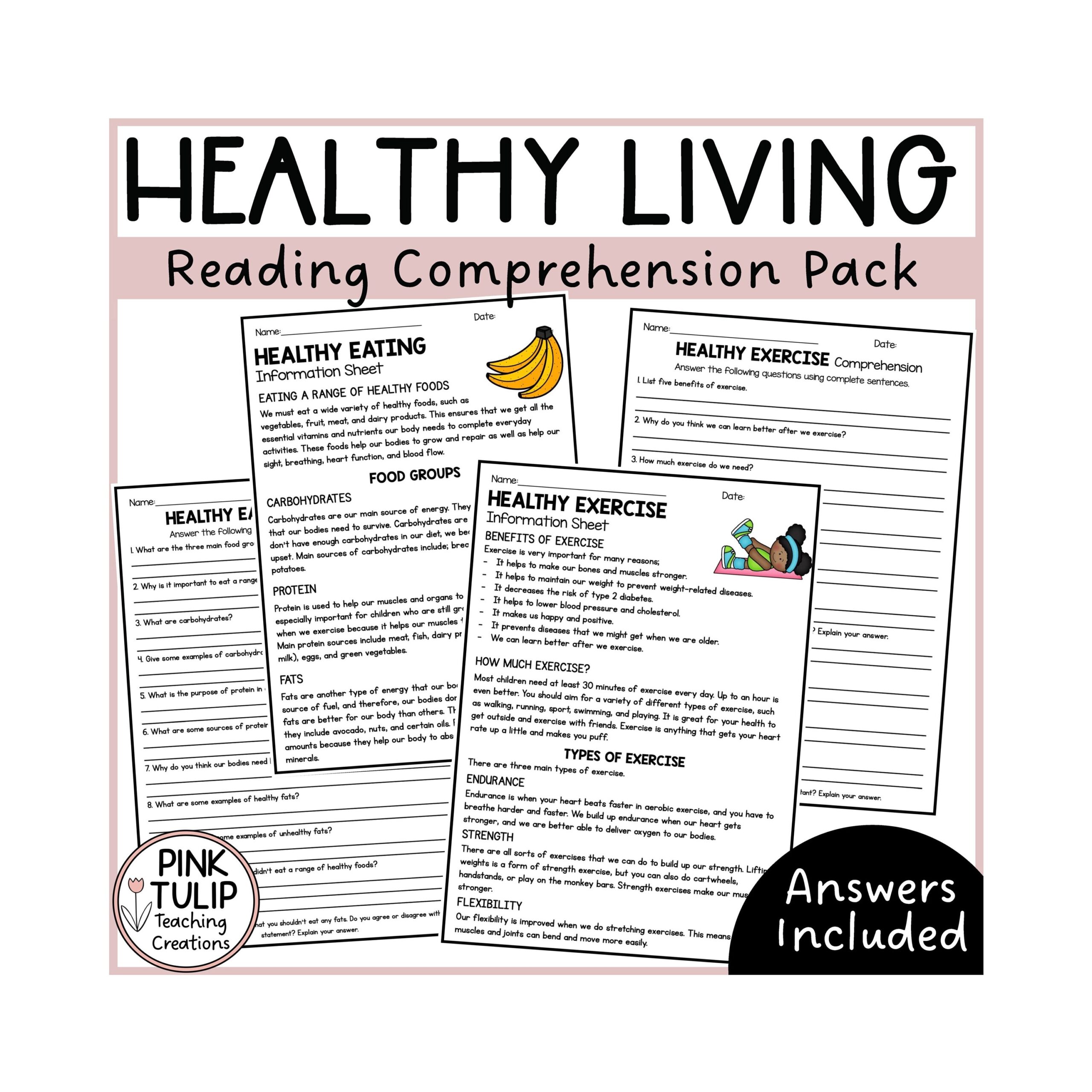 Healthy Living Reading Comprehension Pack Etsy