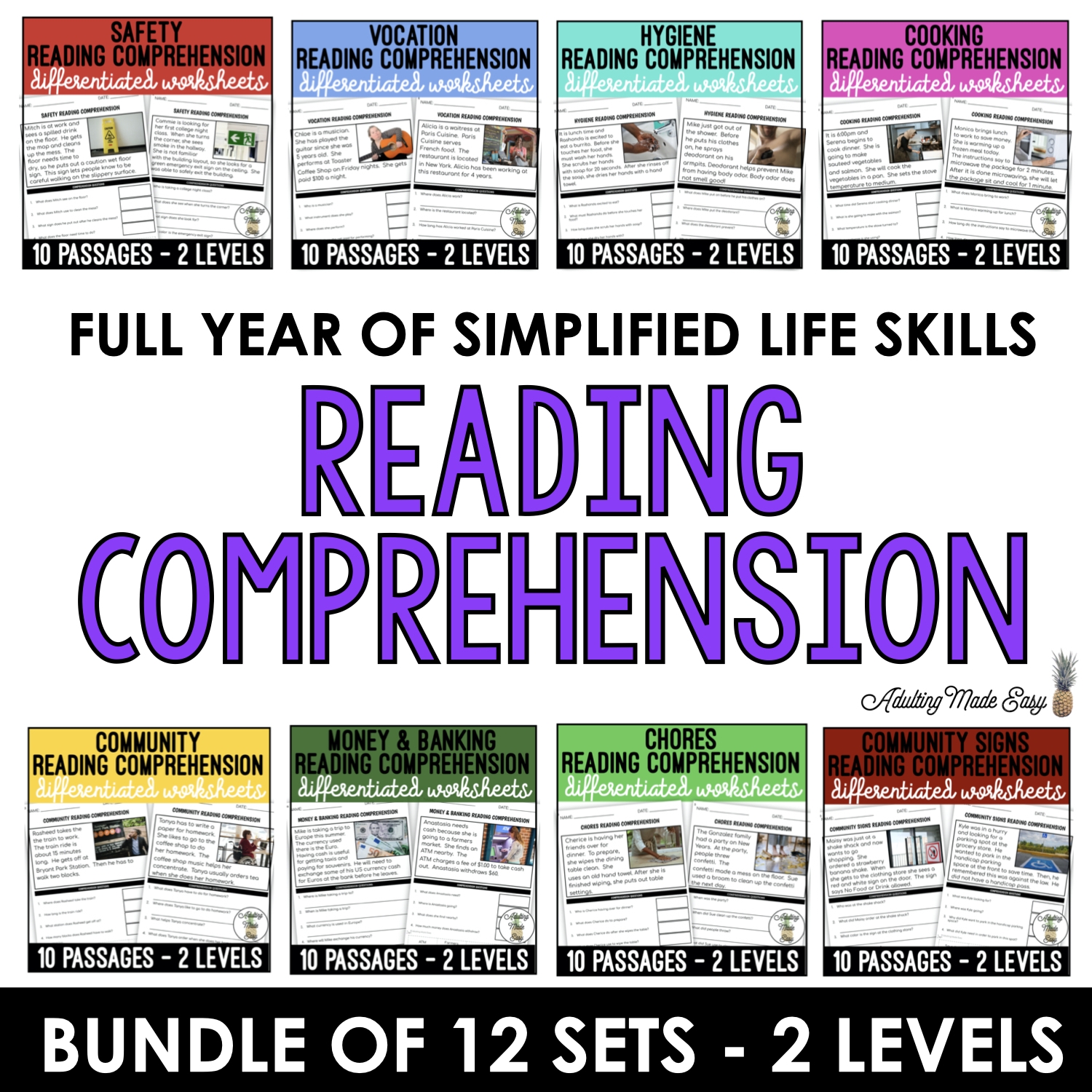 Life Skills Simplified Reading Comprehension Worksheet BUNDLE