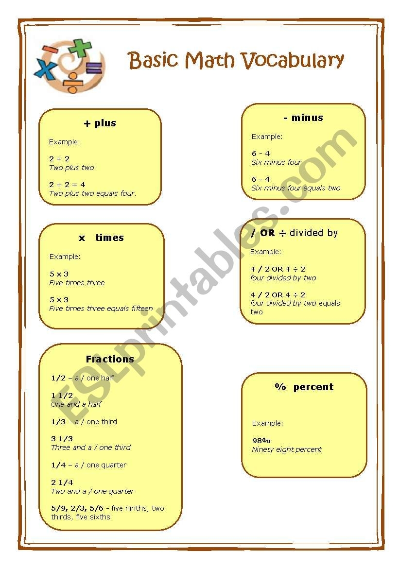 Basic Math Vocabulary ESL Worksheet By Xcharo Worksheets Library