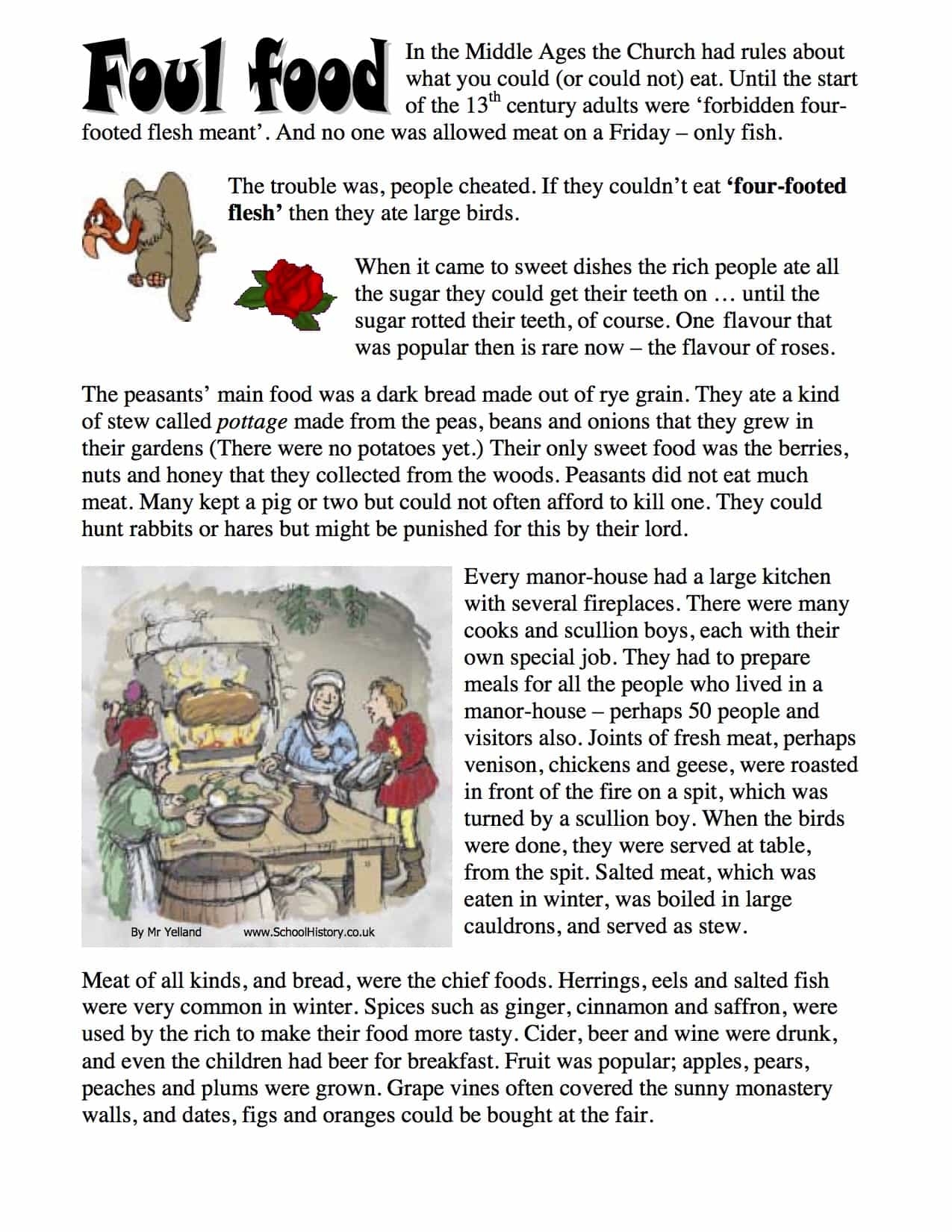 Foul Food In The Middle Ages Worksheet Year 8 9 PDF Task