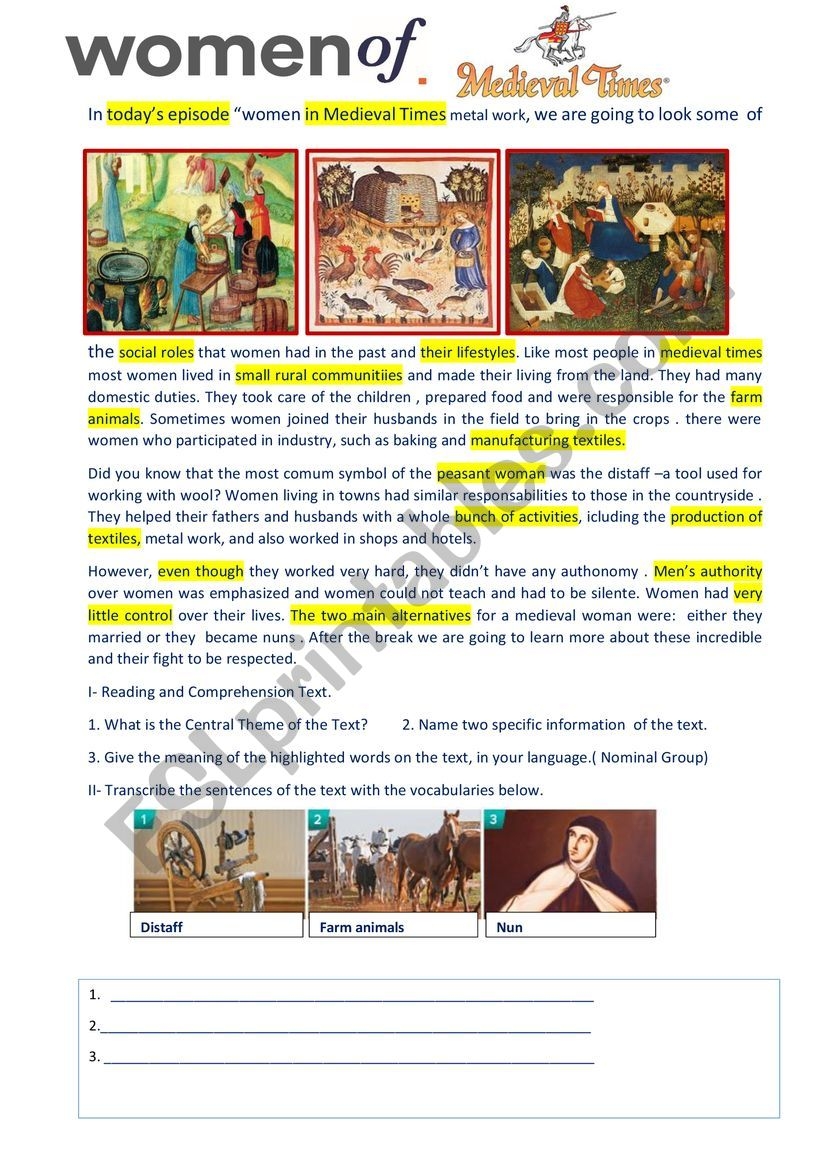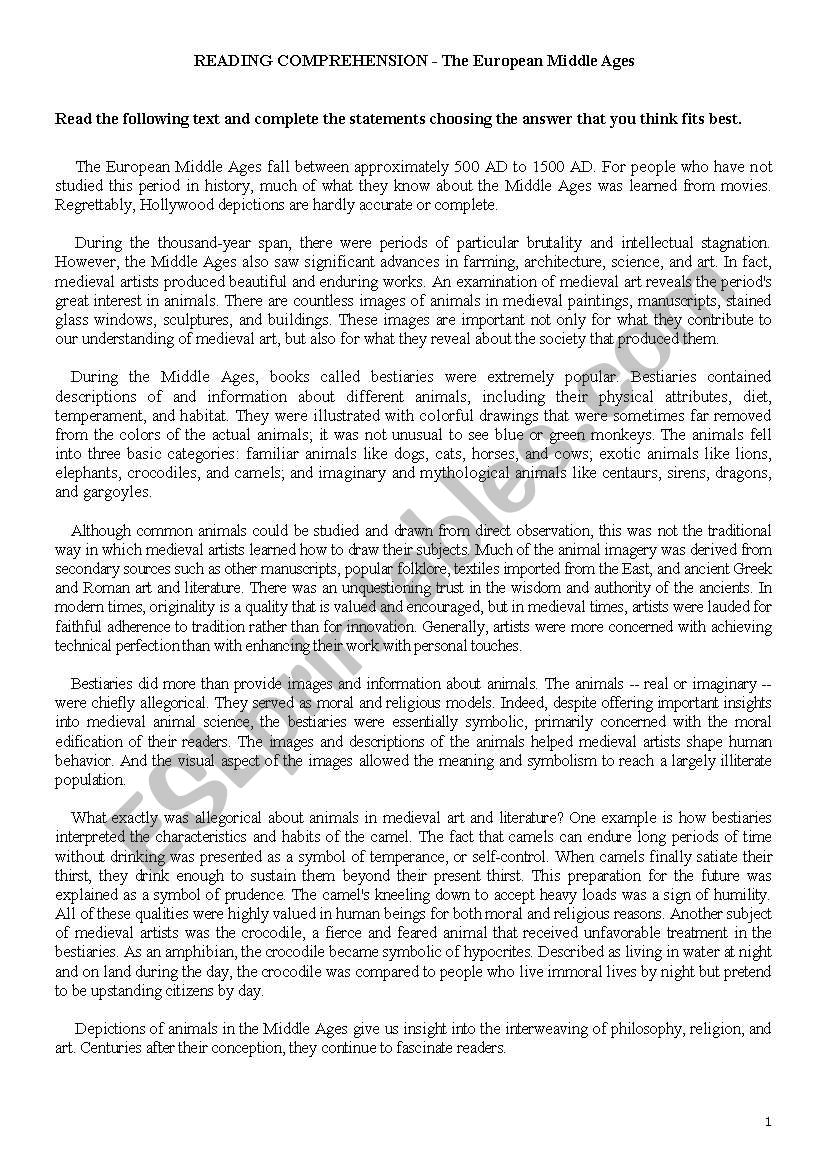 Reading Comprehension The European Middle Ages ESL Worksheet By Tanessi
