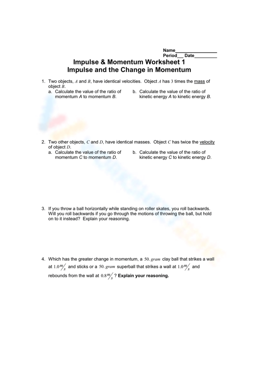 Impulse U0026amp Momentum Worksheets