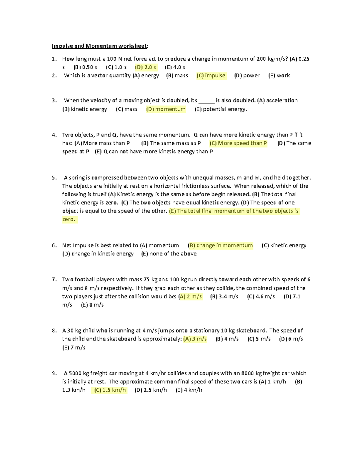 Grade 9 Momentum And Impulse Worksheets 2025