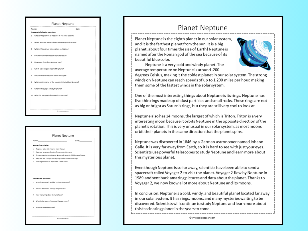 Exploring the wonders of our solar system is an exciting journey for young learners. Neptune, the eighth planet from the sun, is a fascinating topic to dive into. Let’s take a look at a Neptune reading comprehension worksheet to help students grasp key concepts.