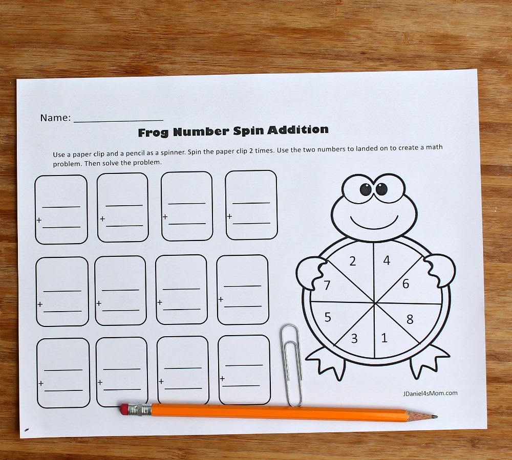 Paperclip Spinner Worksheet Math Kindergarten