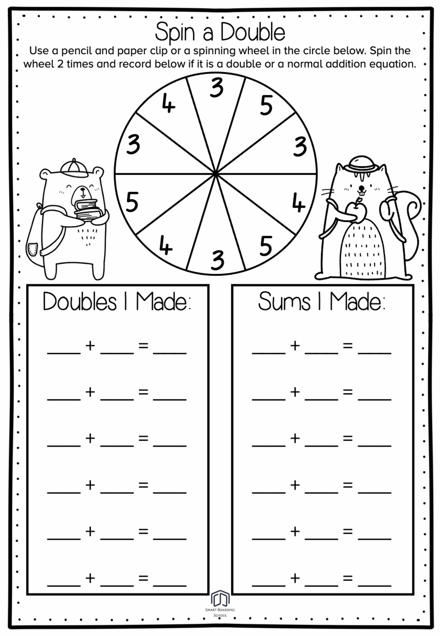 Free One Digit Addition Spinning Printables