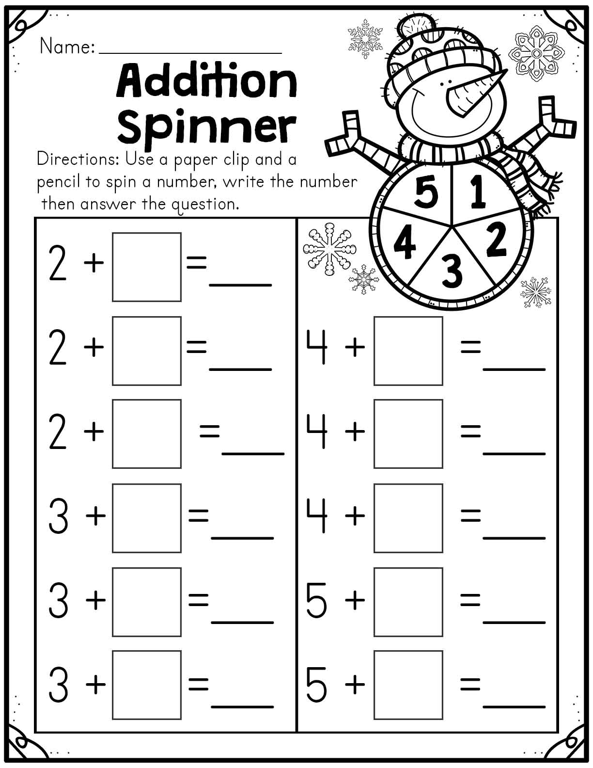 Winter Addition Spinner Worksheet Made By Teachers