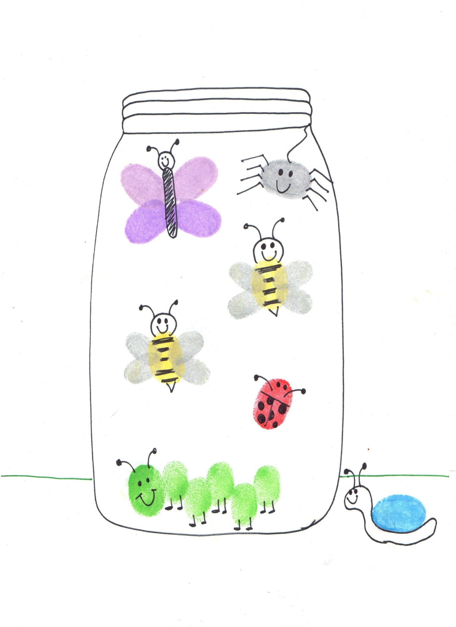 Kids Fingerprint Bug Jar Insect Activity Printable For Preschool Activity Cute Printable Coloring Page For Daycare Classroom Art Etsy