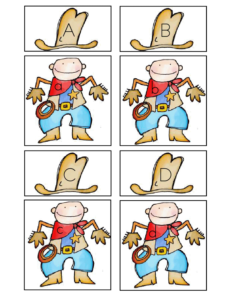 Engage your preschooler in a matching game featuring cowboy boots, bandanas, and sheriff badges. This activity challenges their memory and recognition skills while keeping them entertained with the western theme.
