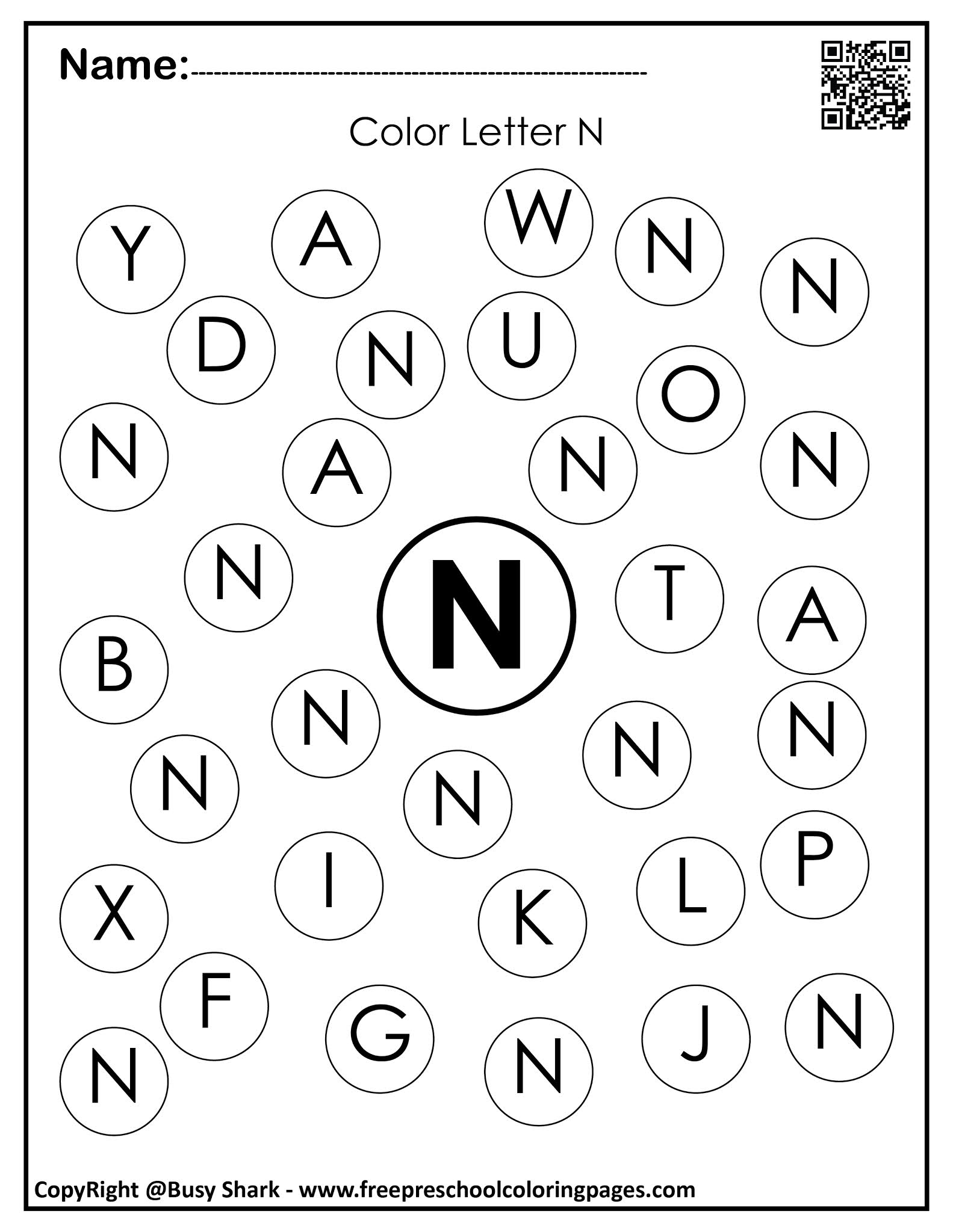 Preschool Letter N Printable
