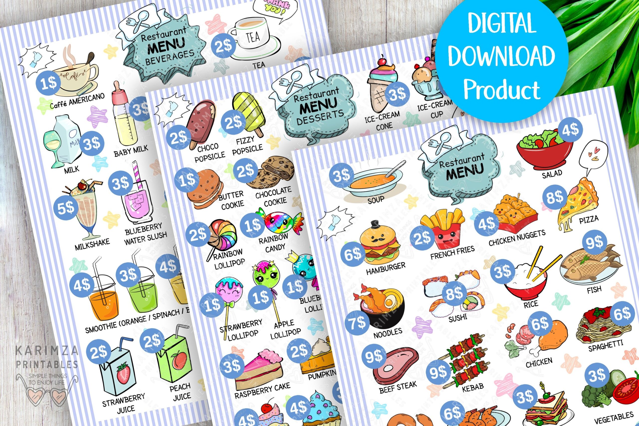 Pretend Play Kids Restaurant PRINTABLE Menu With Price