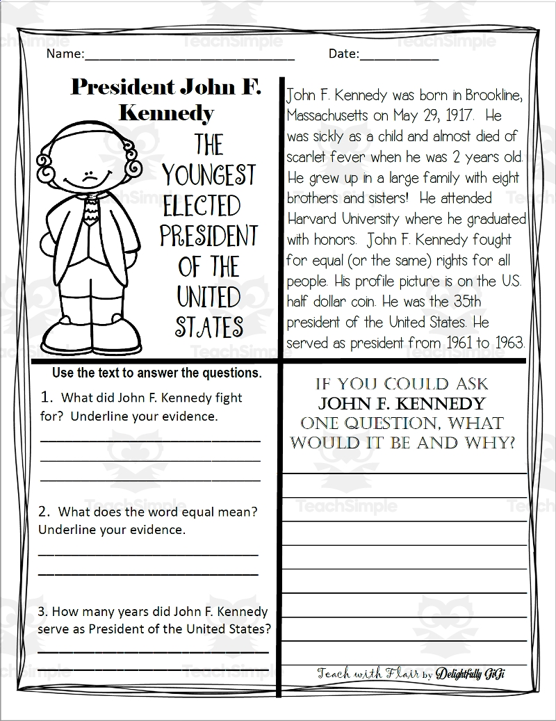 Reading Comprehension For Presidents Day President John F Kennedy