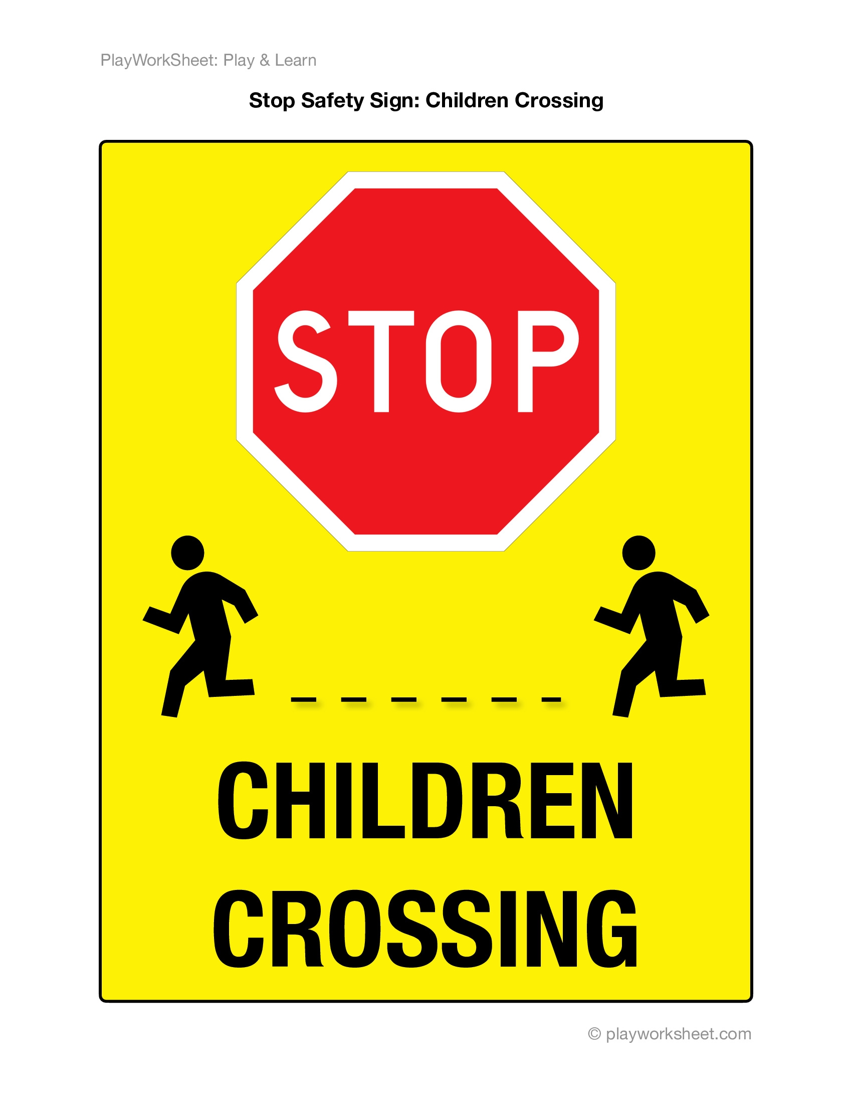 STOP CHILDREN CROSSING Yellow Safety Sign Free Printables For Kids