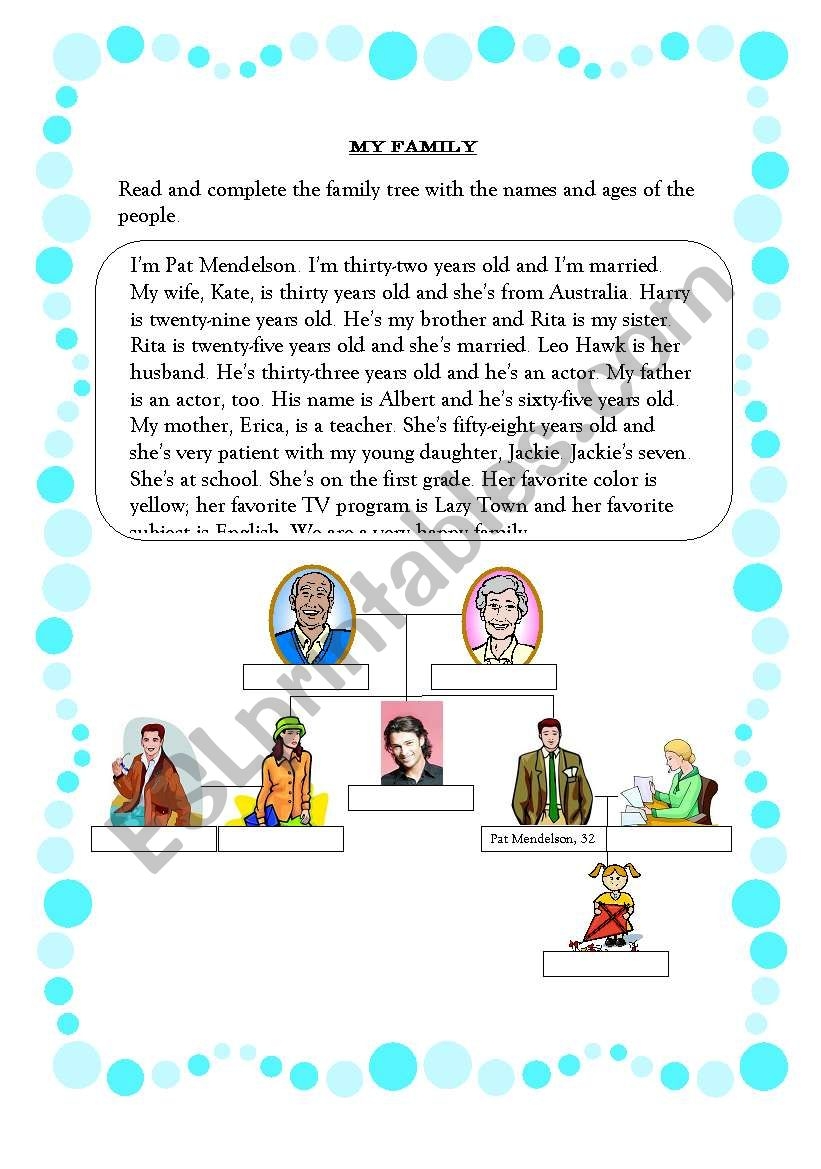 Reading Comprehension My Family ESL Worksheet By VERONIKA1811