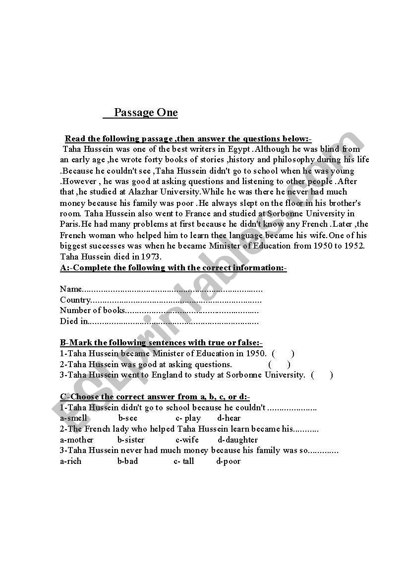 Reading Comprehension ESL Worksheet By Ziade802 Worksheets Library