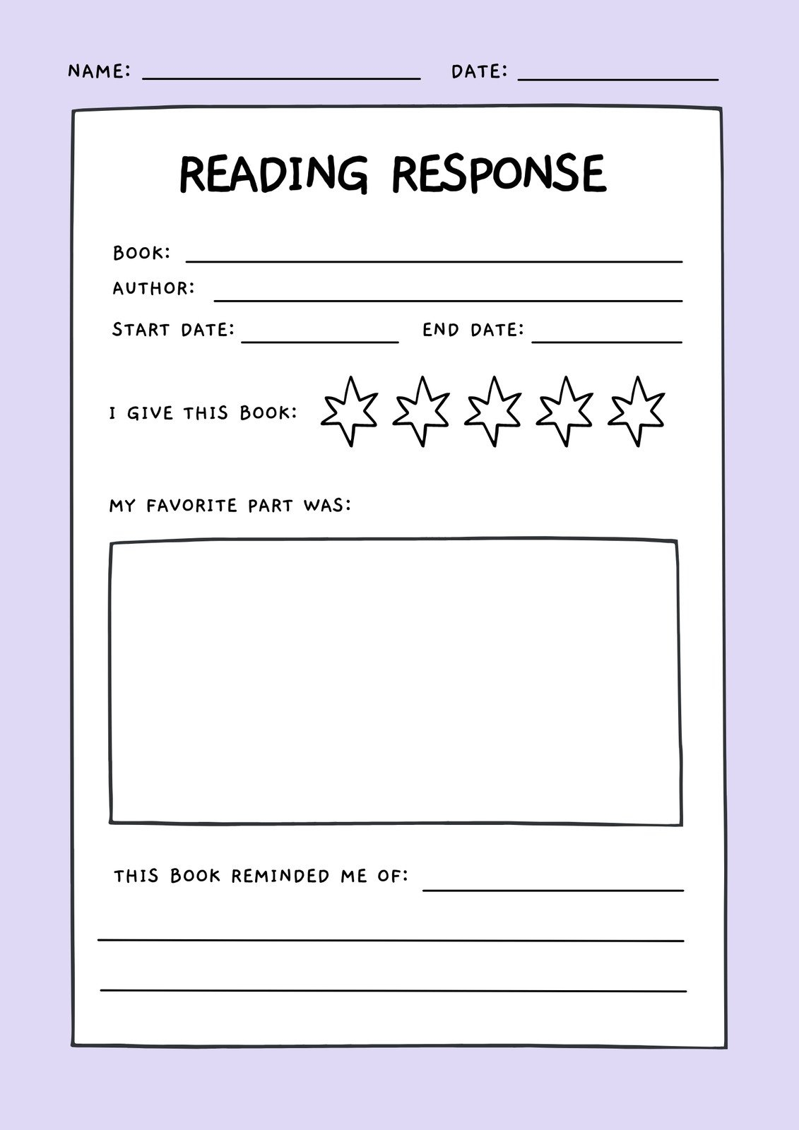 Reading Response Worksheets Customizable Templates