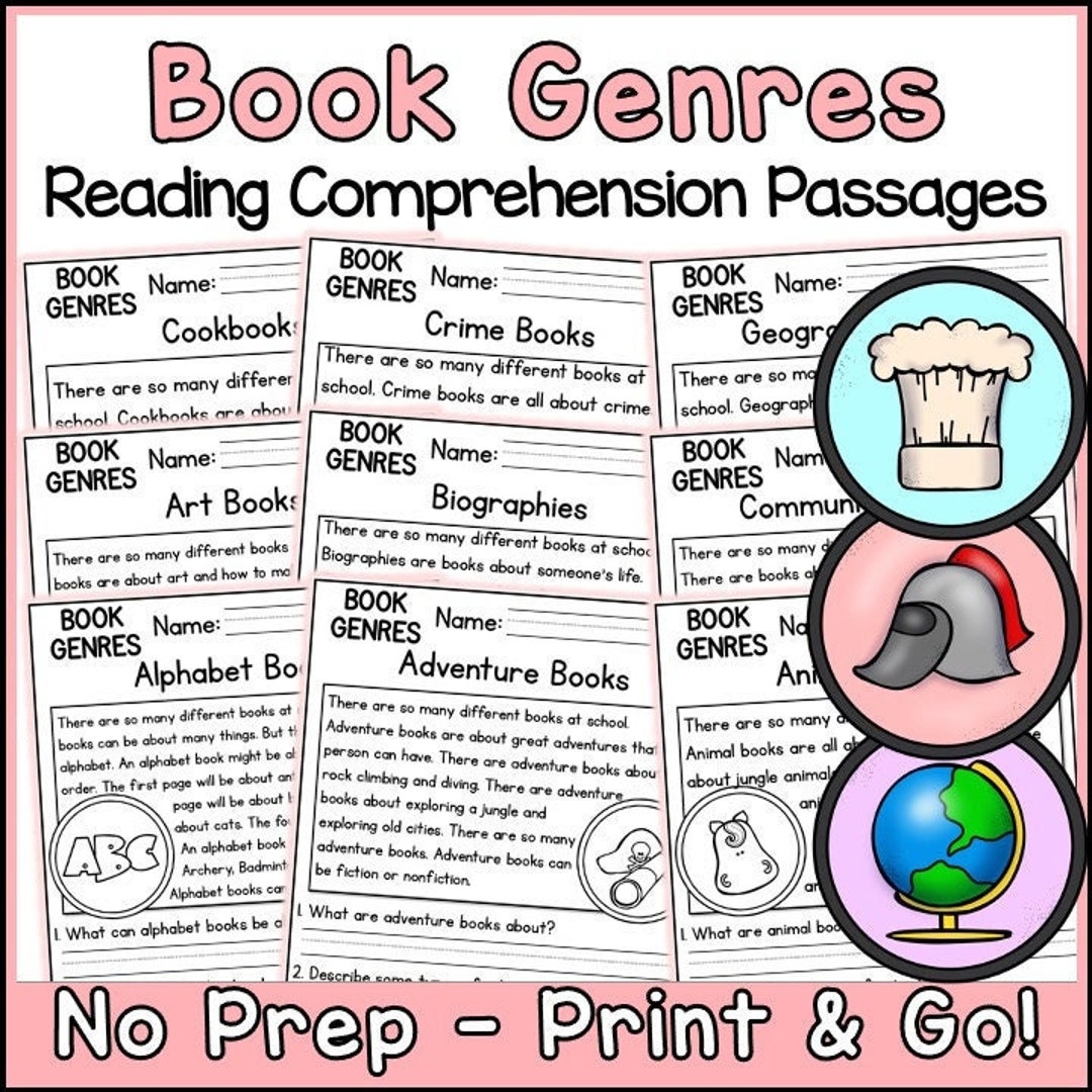 Book Genres Reading Comprehension Passages And Questions Back To School Science Printable Worksheets Etsy