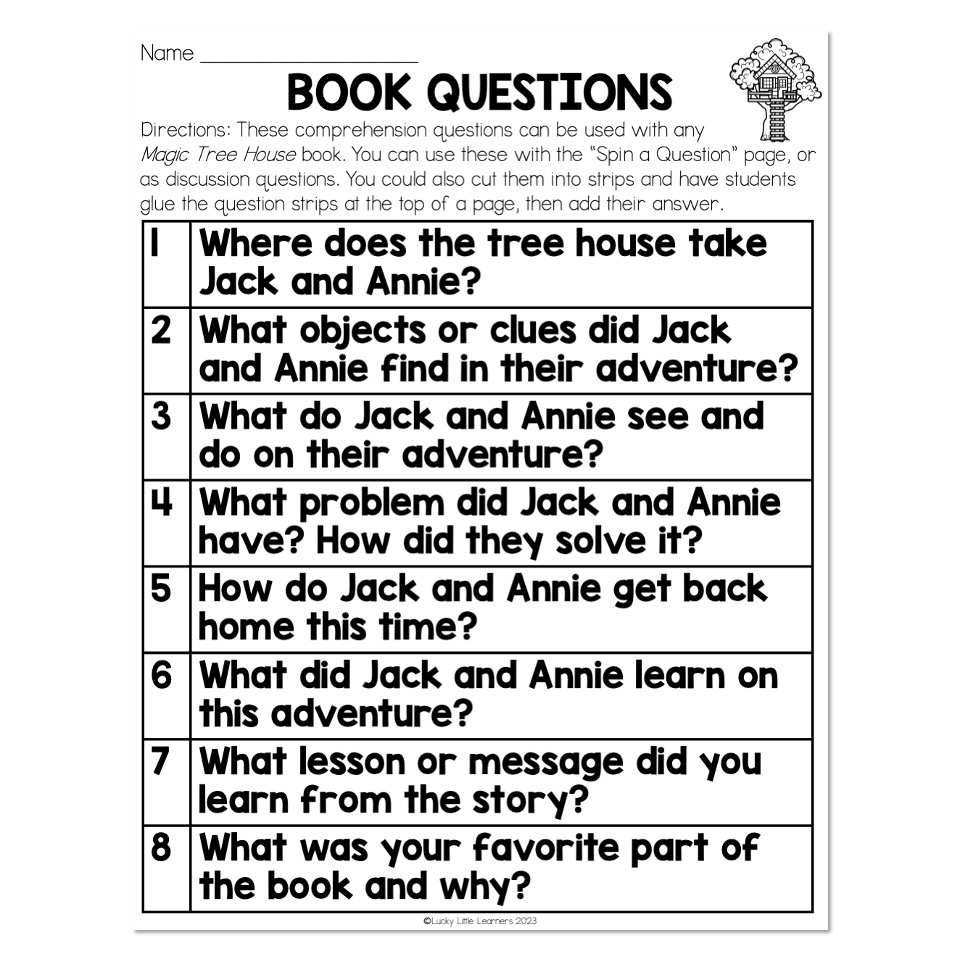 Chapter Book Companion Magic Tree House Book Questions Lucky Little Learners
