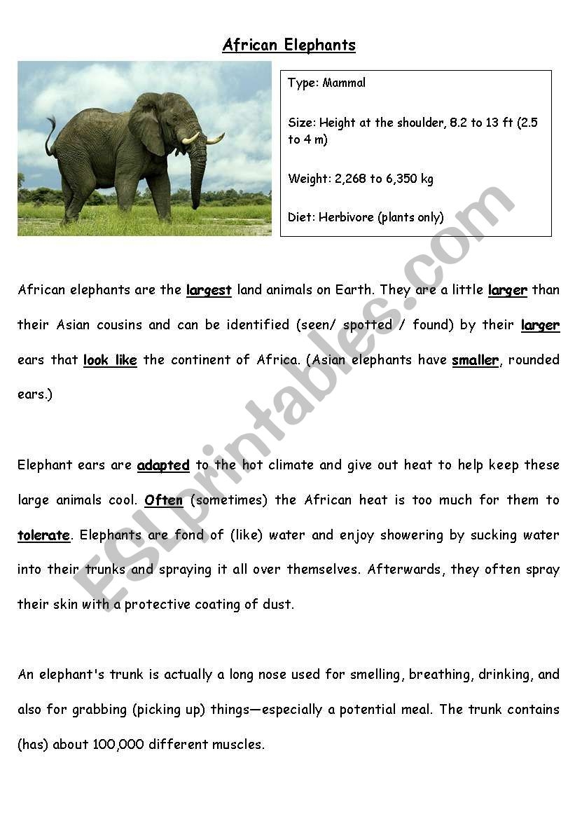 African Elephants ESL Worksheet By Christinetmason