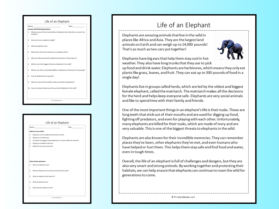 Furthermore, using elephants as a theme for reading comprehension exercises can spark curiosity and encourage children to explore more about these incredible animals. This not only boosts their reading comprehension skills but also expands their knowledge about the world around them.