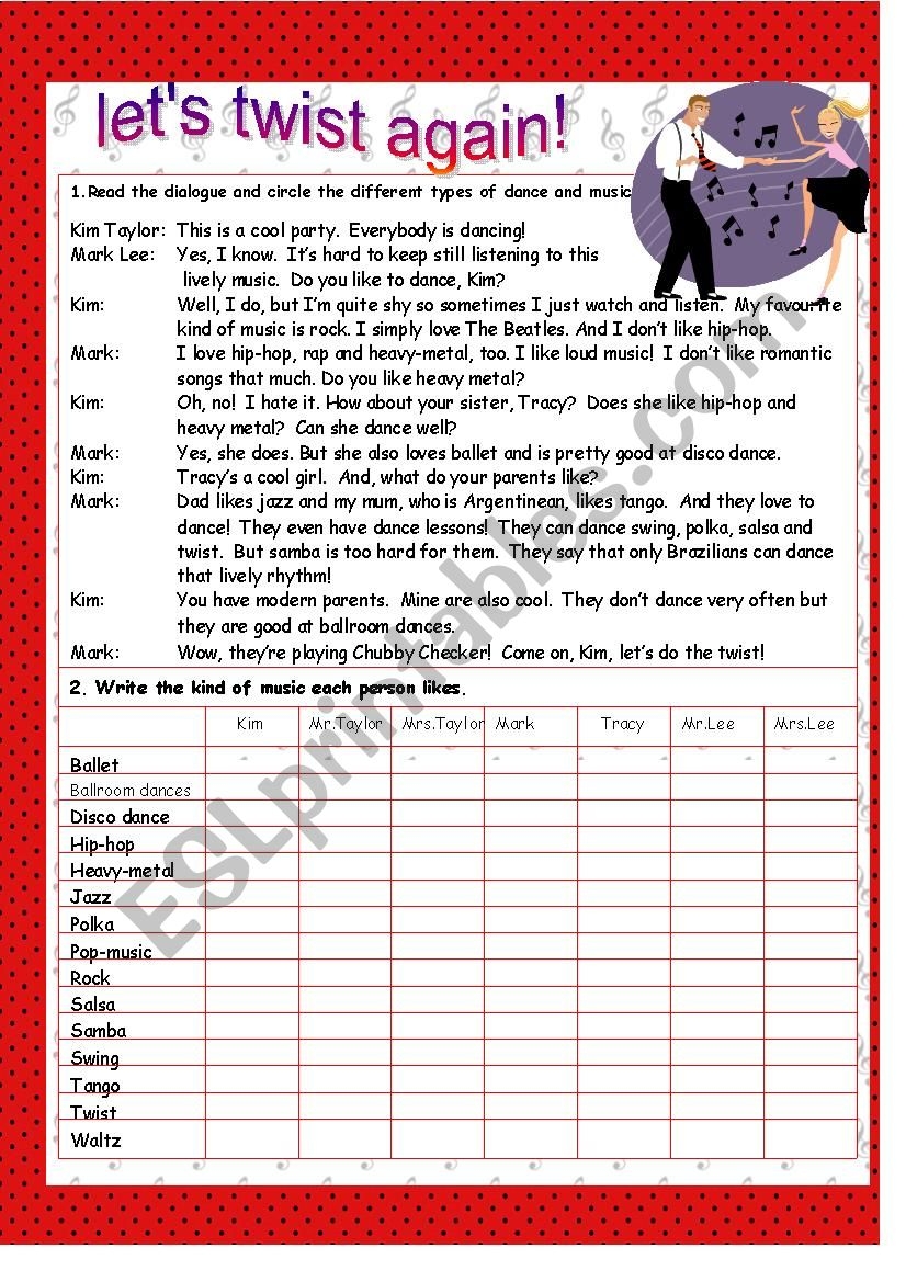Reading Comprehension Music And Dance ESL Worksheet By Anna P