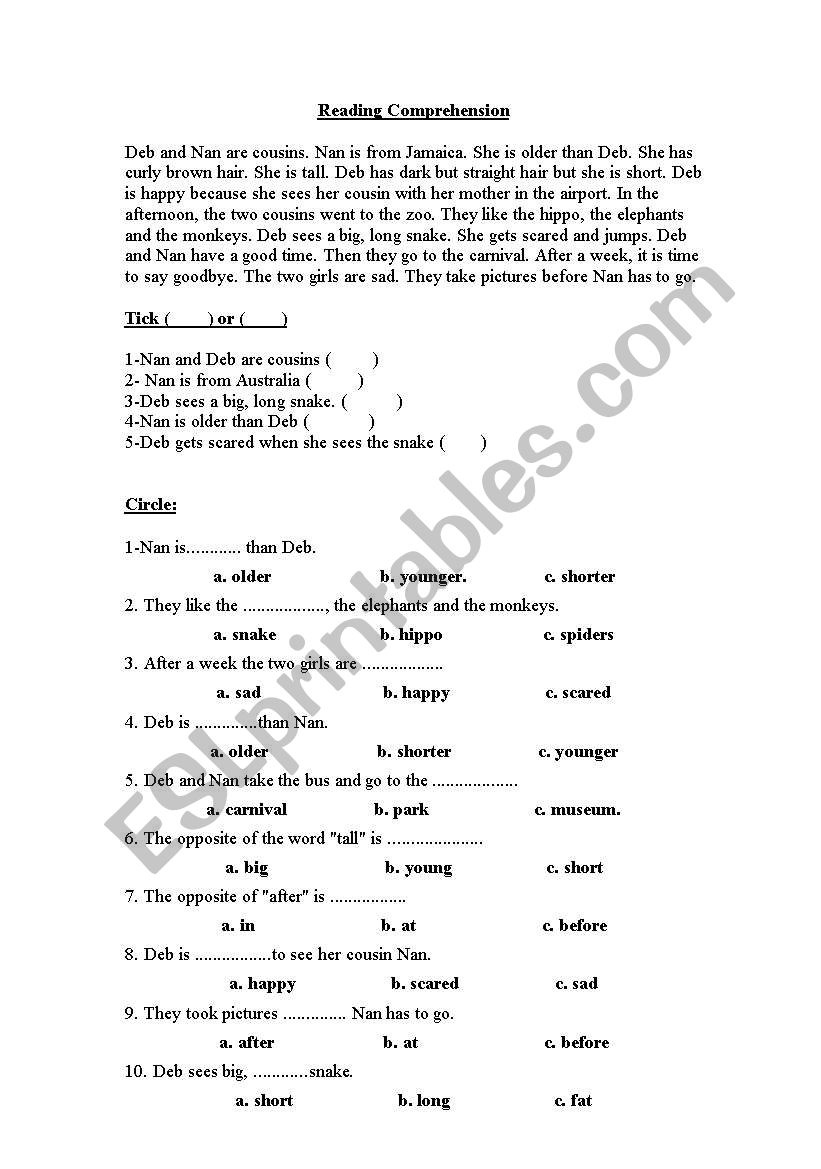 5 Printable Reading Comprehension English Worksheets ages 4 7 KG1 To Grade 2 Etsy Australia