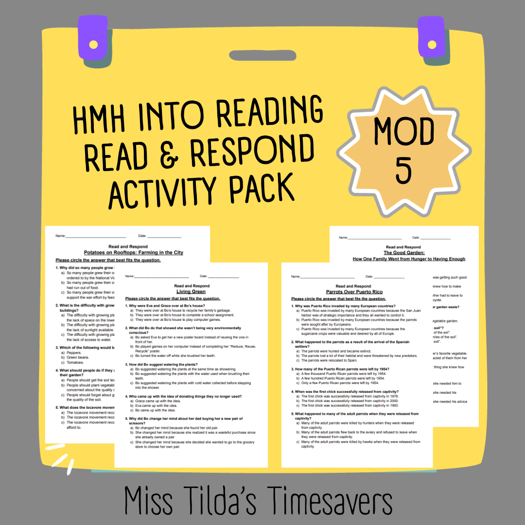Read And Respond Activity Pack Grade 5 HMH Into Made By Teachers
