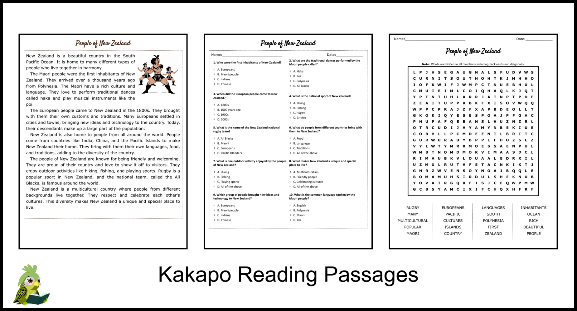 People Of New Zealand Reading Comprehension And Word Search Teaching Resources