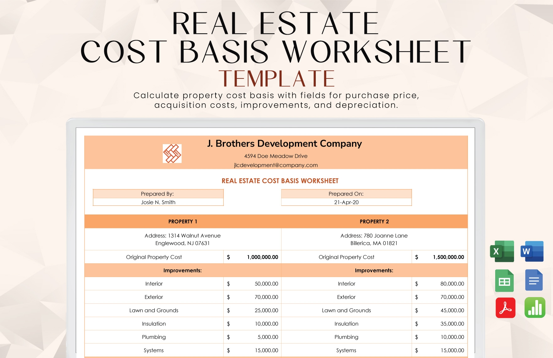 Real Estate Cost Basis Worksheet Template In Apple Numbers Word Google Docs Excel Google Sheets PDF Download Template