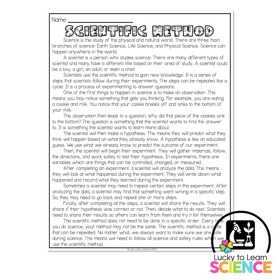 Lucky To Learn Science Scientific Method Reading Passage