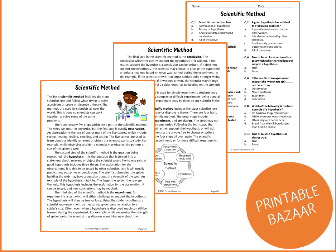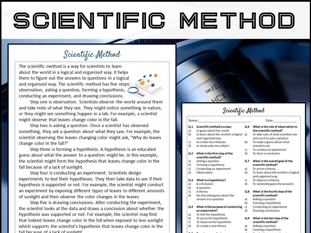 Scientific Method Reading Comprehension Passage And Questions