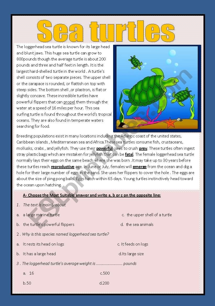 READING SEA ANIMALS ESL Worksheet By Domnitza