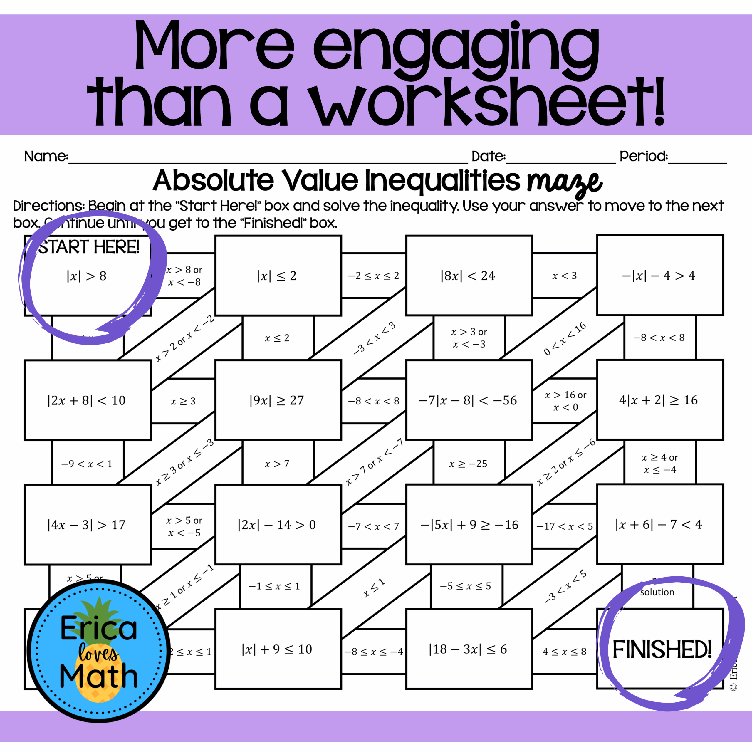 Solving Absolute Value Inequalities Activity Maze Made By Teachers