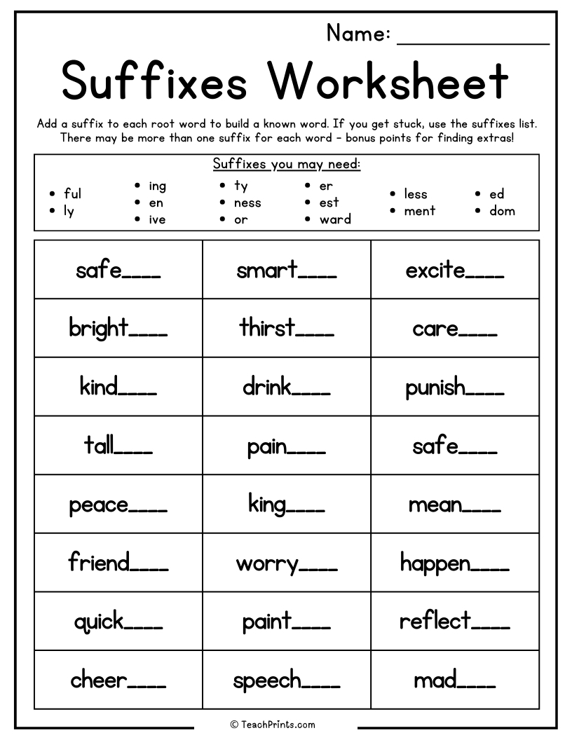 Suffix Worksheets 10 Free PDF Printables Teach Prints