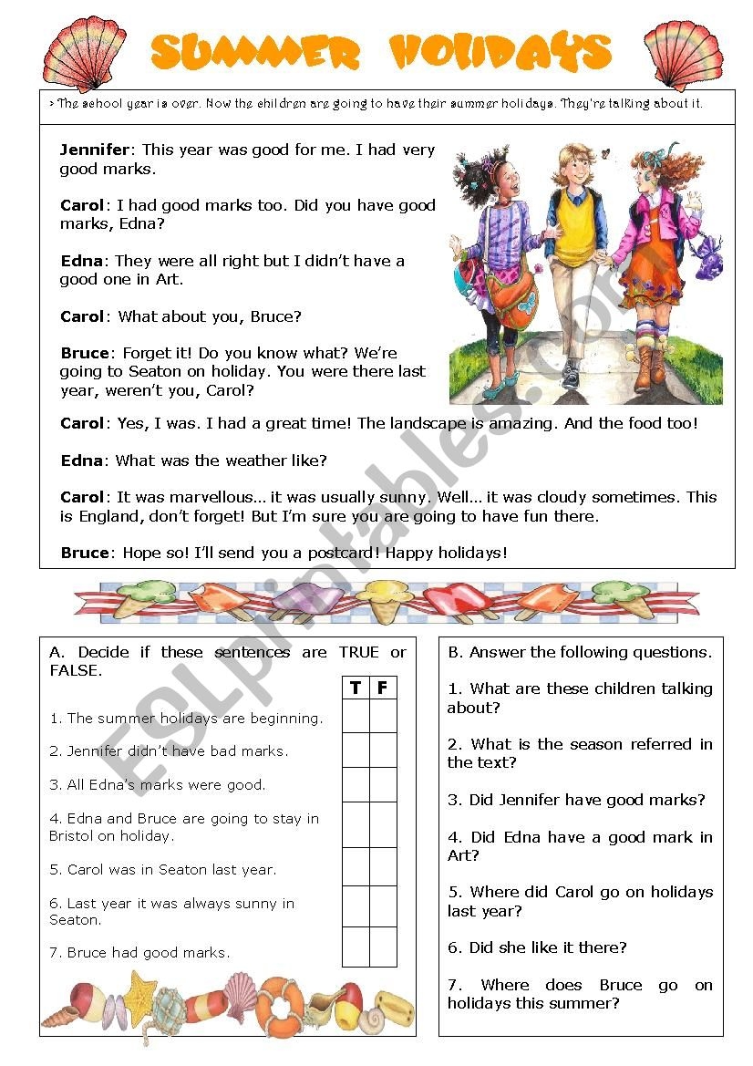 Summer Holidays reading Comprehension ESL Worksheet By Sarasantos