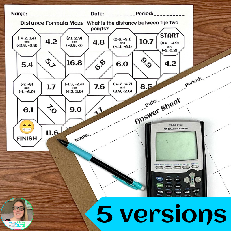 5 Distance Formula Mazes Between Two Points Printable Worksheet Activities Math And Science Sarah