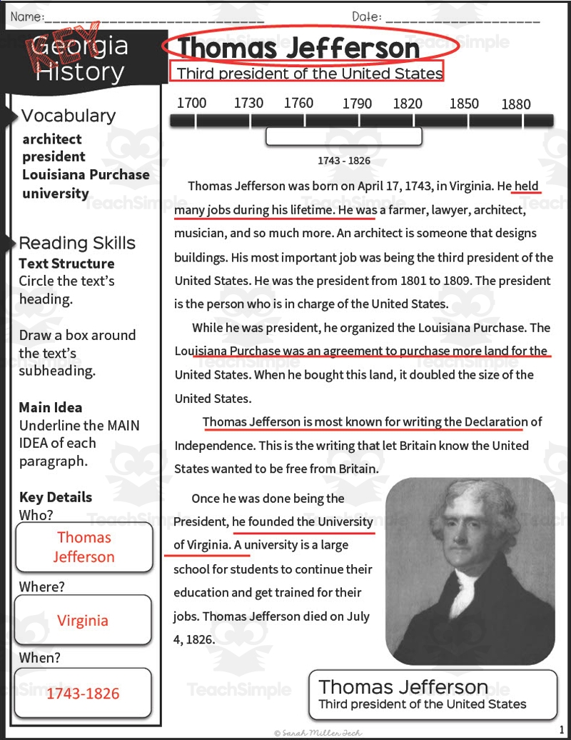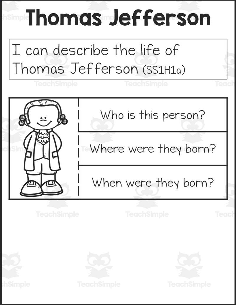 Thomas Jefferson Interactive Notebook SS1H1a SS1H1b SS1G1a SS1CG1