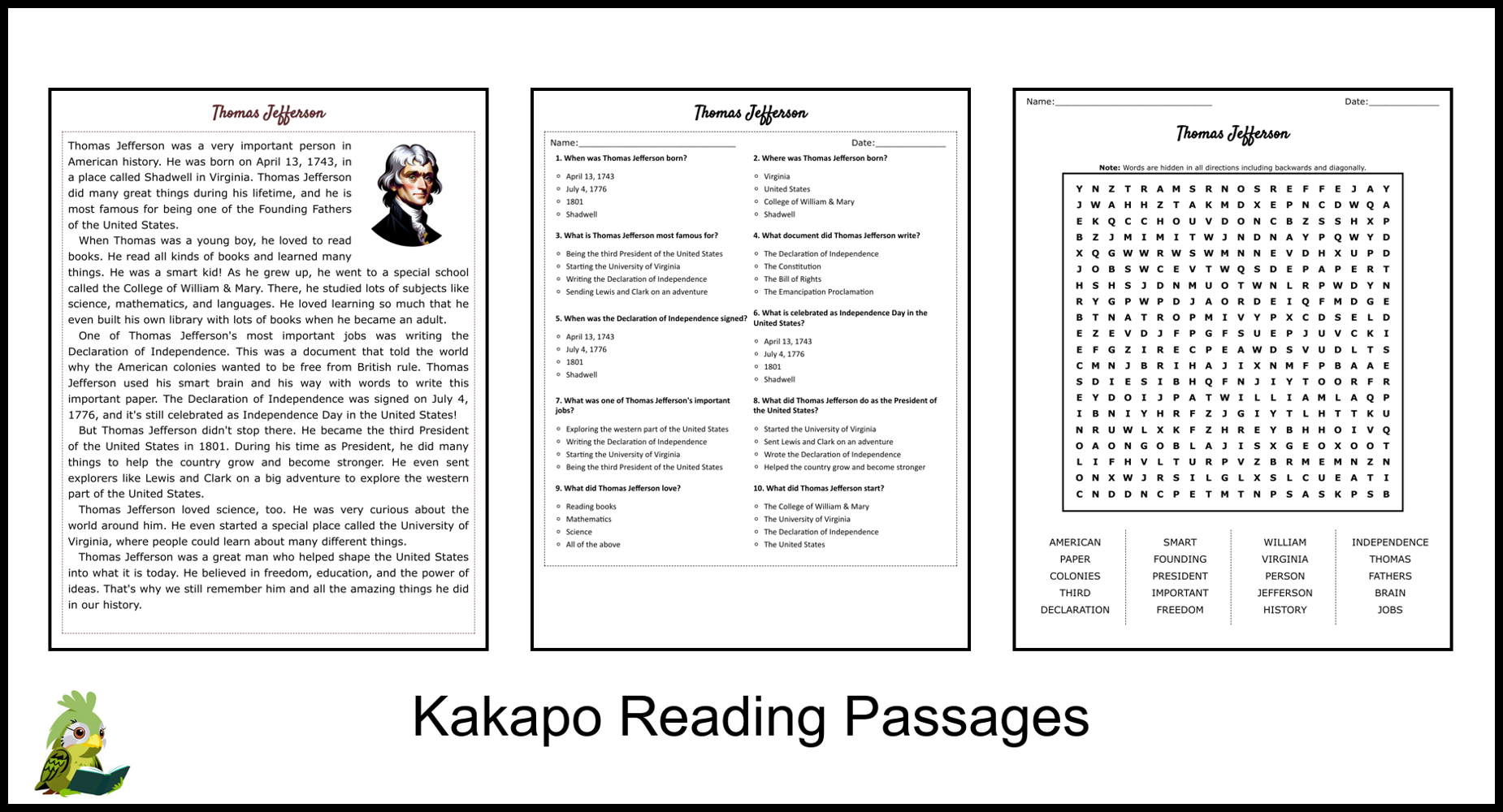 Thomas Jefferson was not only a founding father of the United States but also a strong advocate for education. One way to learn more about this historical figure is through a Thomas Jefferson reading comprehension worksheet.