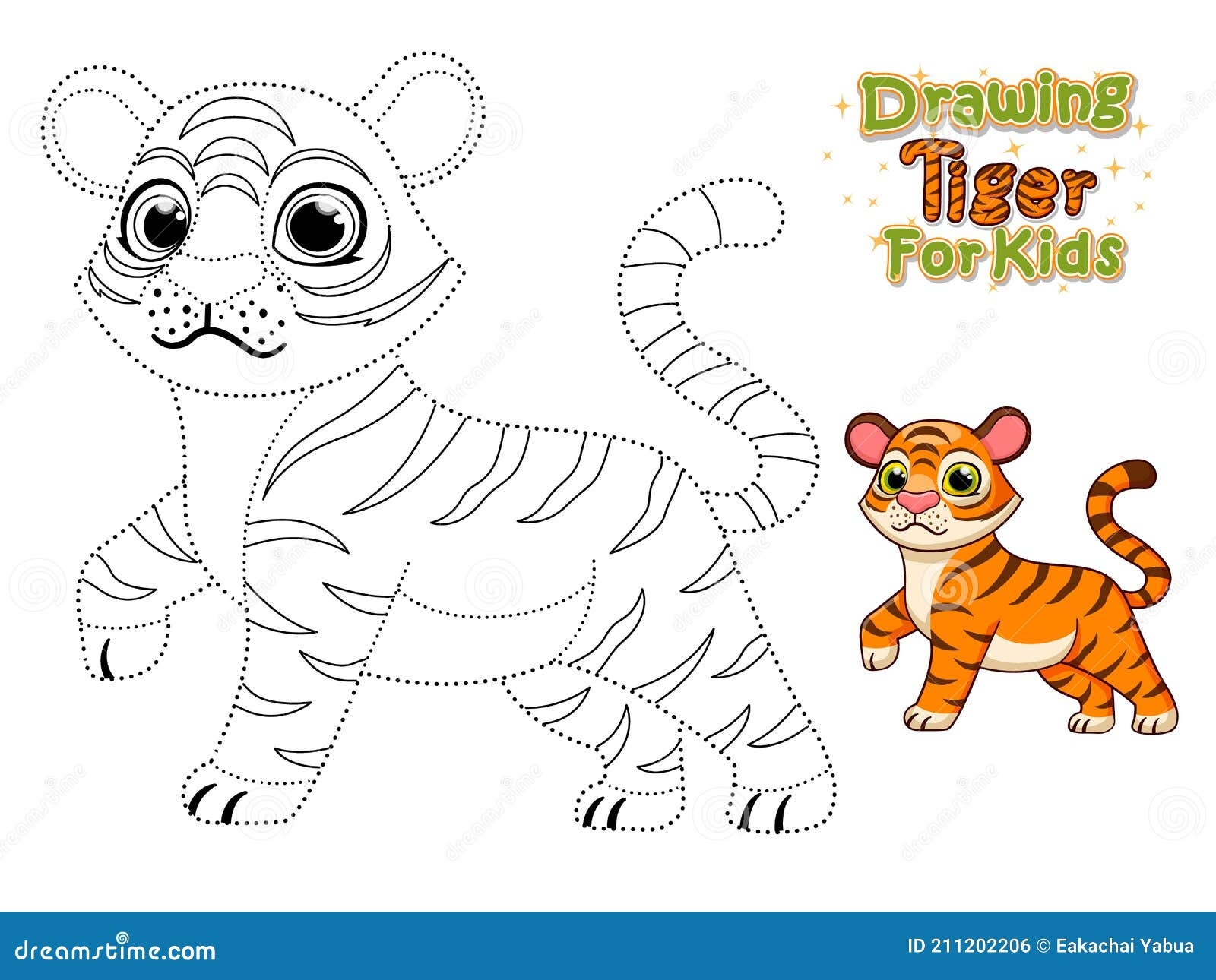 Drawing And Coloring Pages Printables Cute Cartoon Tiger Crafts And Worksheets For Kid Stock Vector Illustration Of Character Follow 211202206