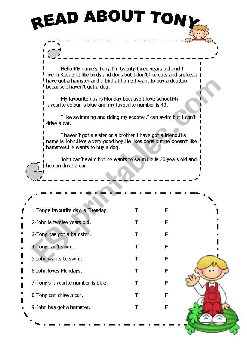 Reading Comprehension Text With True False Sentences ESL Worksheet By Kattie67