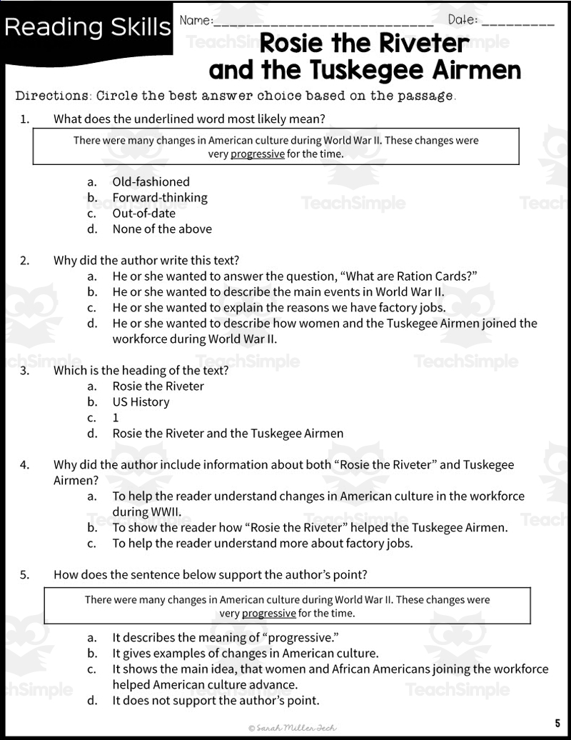 Rosie The Riveter And The Tuskegee Airmen Reading Packet