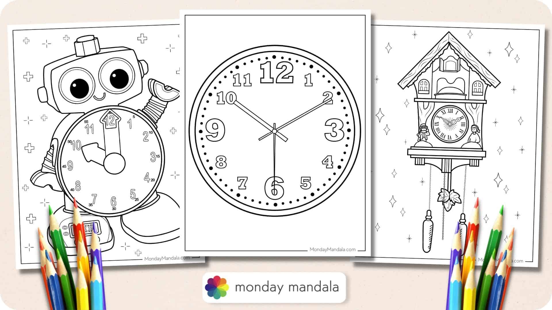 20 Clock Coloring Pages Free PDF Printables